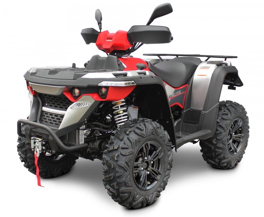 Az új M550 4x4 szintén könnyedén átugorja azt a lécet, amelyet a bevált Linhai 500 4x4 nagyon magasra állított. A modern, agresszív formatervezés, a jó minőség / ár arány, a nagyfokú hasznossági érték, a csodálatos manőverezőképesség és a kiváló praktikum teszi ezt a modellt a középosztály kedvencévé. A Linhai M550 bevált független kerék felfüggesztéssel és megbízható egyhengeres motorral kerül forgalomba. A DELPHI modern üzemanyag-befecskendezése megbízható üzemanyag-mentes indítást és optimális motor teljesítményt nyújt bármilyen magasságban, alacsonyabb üzemanyag-fogyasztás és tisztább égés mellett. Két zárható differenciálmű biztosítja a tökéletes tapadást és a tökéletes teljesítményátadást.