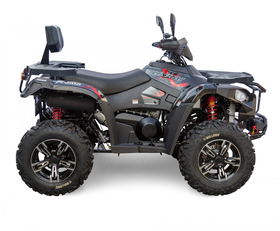 Megbízható technológia, erős motor, kényelmes felfüggesztés és vonzó dizájn LED Matrix fényszórókkal. A Linhai 500 ProMax készen áll minden munka elvégzésére a farmon, a nyaralóban, a mezőn vagy az erdőben. A mindennapi használat során, kirándulásokon és nehéz terepen értékelni fogja ennek a teljesen felszerelt univerzális négykerekűnek a rendkívül mozgékony futóművét, az elektromosan kapcsolható 4x4-es hajtást, zárható differenciálművel és a kiváló kezelhetőséget.