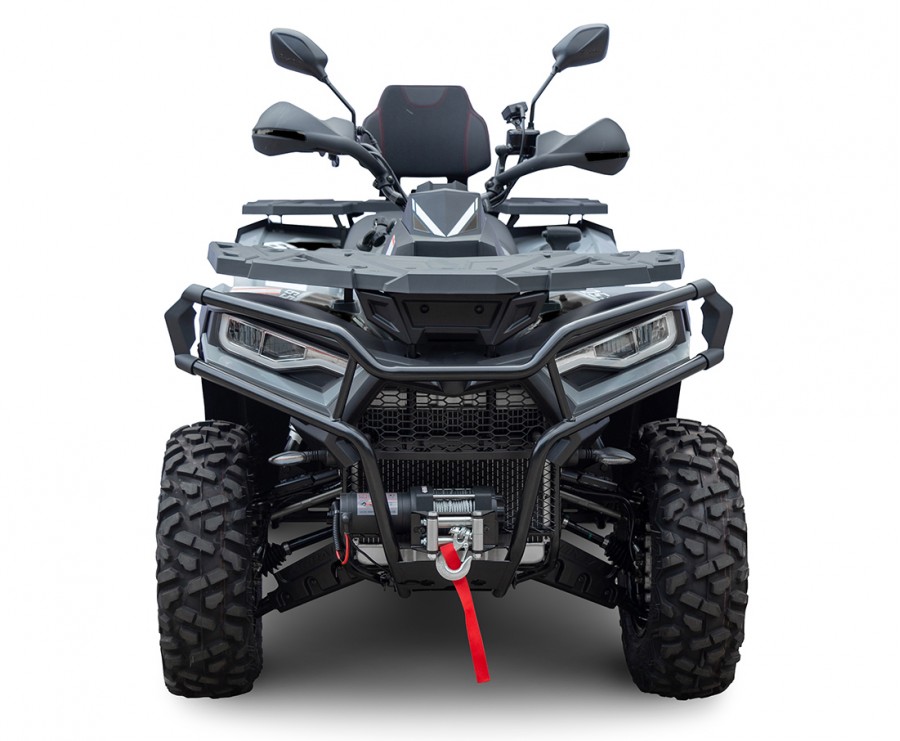 Nagyobb teljesítmény, nagyobb teljesítmény Linhai 650L szervokormánnyal és új fejlesztésű Linhai LH191MS motorral. Modern Promax dizájn LED Matrix fényszórókkal és robusztus acél első lökhárítóval. A Linhai 650 ProMax minden munkára készen áll a farmon, a nyaralóban, a mezőn vagy az erdőben. A TFT műszerfal automatikus fényerő-beállítással van felszerelve, amely automatikusan be tudja állítani a kijelző fényerejét a külső fény intenzitásának megfelelően. A mindennapi használat során, kiránduláson és nehéz terepen értékelni fogja a kiválóan mozgékony, önállóan felfüggesztett kerekekkel rendelkező futóművet és a 2x4 / 4x4 hajtás elektromos kapcsolását, zárható első és hátsó differenciálművel.