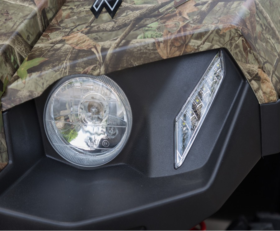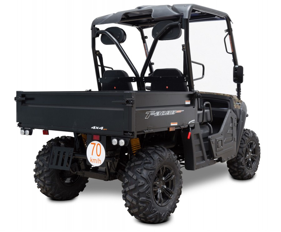 Elektromos szervokormány EPS, összecsukható test elforgatható és leszerelhető elülső és oldalsó oldalakkal, extra erős csörlő 4500 lbs, első védőkeret, acél védő oldalkeretek, 14 hüvelykes kerekek hatrétegű gumiabroncsokkal, UV-álló műanyag tető, összecsukható lábvédelem, védőkeret ROPS tanúsítvánnyal, szemcsap vontatóval, padon ülés biztonsági övekkel, műszerfal tároló rekesz, dupla vetítő fényszórók, LED nappali menetjelző lámpák, akusztikus fordított jelzés