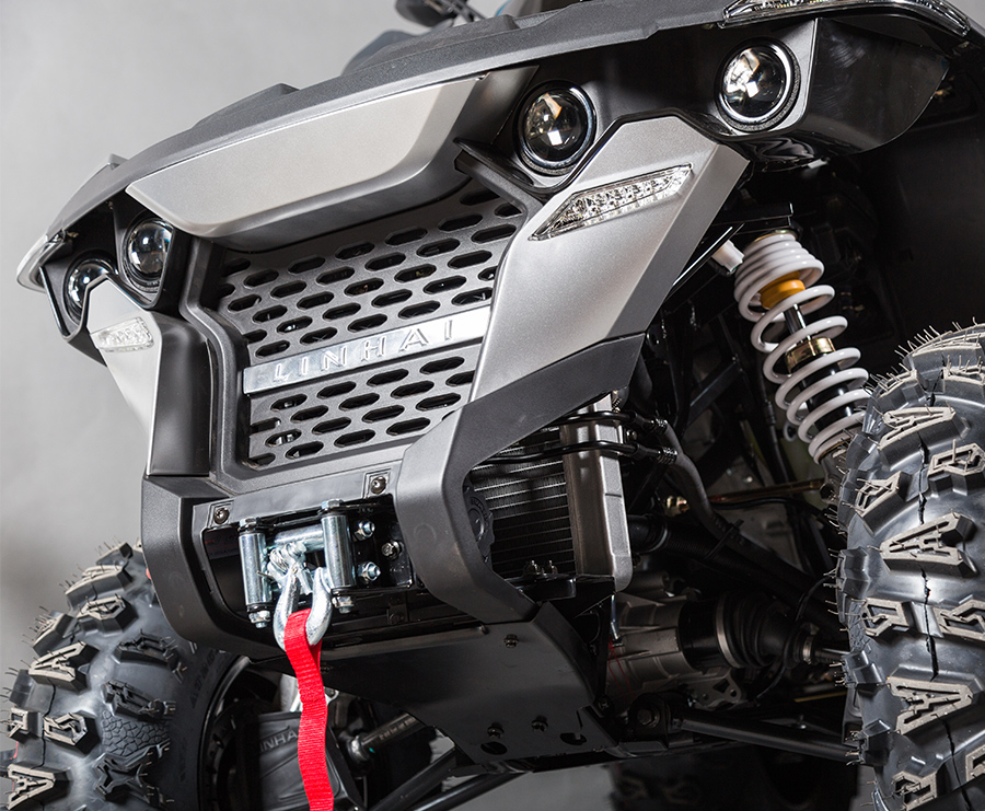 A rendkívül kedvező ár ellenére a Linhai M550 EFI 4x4 gazdag alapfelszerelést kínál. Ide tartoznak például egy hatalmas első védőszerkezet, hátsó csomagtartó, designer alumínium kerekek márkás gumiabroncsokkal, 3000 font elektromos lehúzó és távirányító, vonóhorog, kar és kézhuzatok, tervező visszapillantó tükrök, LED nappali menetjelző lámpák, LED villogók és LED-es hátsó lámpák, kettős projektoros fényszórók, USB-aljzat, 12V-os aljzat vagy a villogó és a hátrameneti fokozat praktikus hangjelzése.