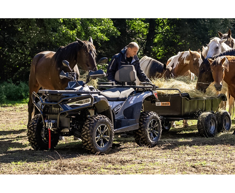 Nagyobb teljesítmény, nagyobb teljesítmény Linhai 650L szervokormánnyal és új fejlesztésű Linhai LH191MS motorral. Modern Promax dizájn LED Matrix fényszórókkal és robusztus acél első lökhárítóval. A Linhai 650 ProMax minden munkára készen áll a farmon, a nyaralóban, a mezőn vagy az erdőben. A TFT műszerfal automatikus fényerő-beállítással van felszerelve, amely automatikusan be tudja állítani a kijelző fényerejét a külső fény intenzitásának megfelelően. A mindennapi használat során, kiránduláson és nehéz terepen értékelni fogja a kiválóan mozgékony, önállóan felfüggesztett kerekekkel rendelkező futóművet és a 2x4 / 4x4 hajtás elektromos kapcsolását, zárható első és hátsó differenciálművel.