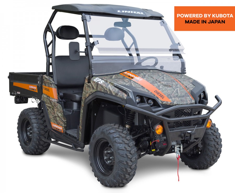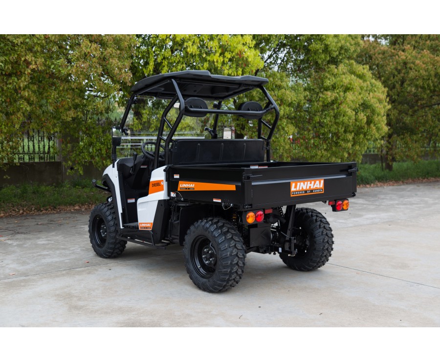 A legmagasabb sorozat legjobb UTV-je a híres, megbízható japán Kubota dízelmotorral. A LINHAI UTV 1100 dízel mindent tartalmaz, amire szükség van a kemény munkához: egy nagy karosszéria, amelyre fél tonnányi rakomány fér, 800 kg vontatás, robusztus alváz 2x4 / 4x4 hajtással, egyszerű kezelhetőség. Ehhez járul hozzá a vonzó modern formatervezés, a minőségi kivitelezés és egy olyan ár, amely verhetetlen a piacon: A LINHAI UTV1100 dízel az egyik legcsábítóbb ajánlat a magán- és professzionális használatra a piacon.